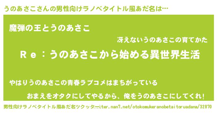 | 女子向けラノベタイトル風あだ名 | 『うのあさこストレイドッグス』 |