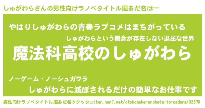 | 意味不明あだ名 | 『自称しゅがわら』『永久保存しゅがわら』 |