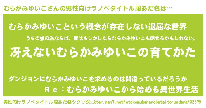 | 女子向けラノベタイトル風あだ名 | 『男装むらかみゆいこの憂鬱な任務』 |
