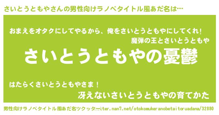 | 女子向けラノベタイトル風あだ名 | 『(仮)さいとうともやのやんごとなき事情』 |