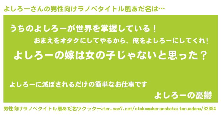| 意味不明あだ名 | 『とにかく怪しいよしろー』 |