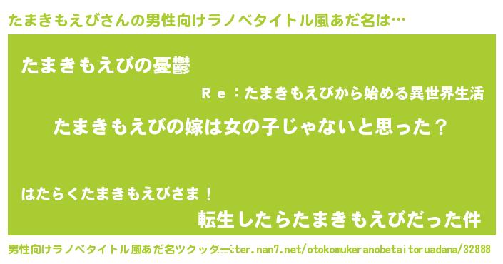 | 女子向けラノベタイトル風あだ名 | 『たまきもえび様がみてる』 |