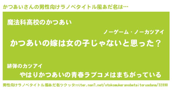 | 女子向けラノベタイトル風あだ名 | 『かつあいの卵を拾いまして』 |
