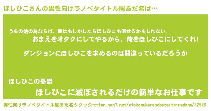 | 女子向けラノベタイトル風あだ名 | 『ほしひこの卵を拾いまして』 |