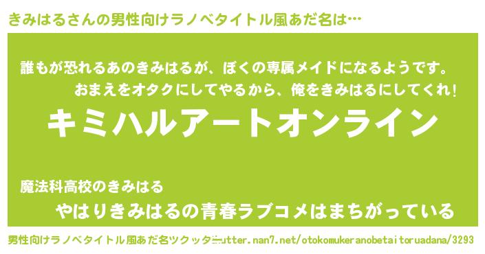| 女子向けラノベタイトル風あだ名 | 『きみはる姫と円卓の騎士』 |