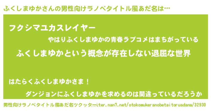 | ヘコむあだ名 | 『ふくしまゆか(小並感)』『ふくを』 |
