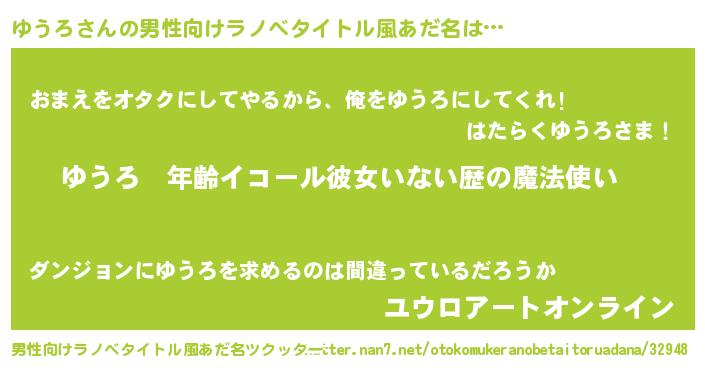 | 肩書あだ名 | 『ゆうろ上級大将』『ゆうろ学部長』 |