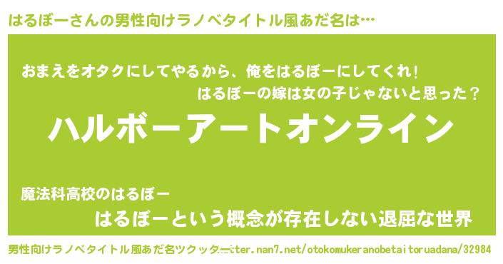 | 胡散臭い通販商品みたいなあだ名 | 『億万長者になれる水晶球…その名も「はるぼー」』 |