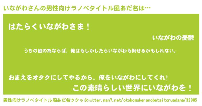 | 女子向けラノベタイトル風あだ名 | 『いながわ伯爵の花嫁』『いながわ恋絵巻』 |
