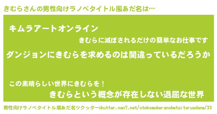 | 女子向けラノベタイトル風あだ名 | 『きむらは平凡を望む』 |