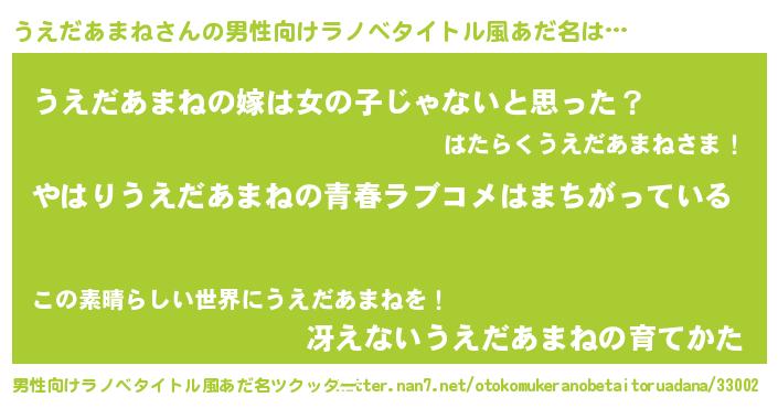 | 女子向けラノベタイトル風あだ名 | 『うえだあまねの雑貨屋さん』 |