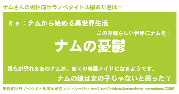 | 女子向けラノベタイトル風あだ名 | 『ナム姫と円卓の騎士』『ナム様がみてる』 |