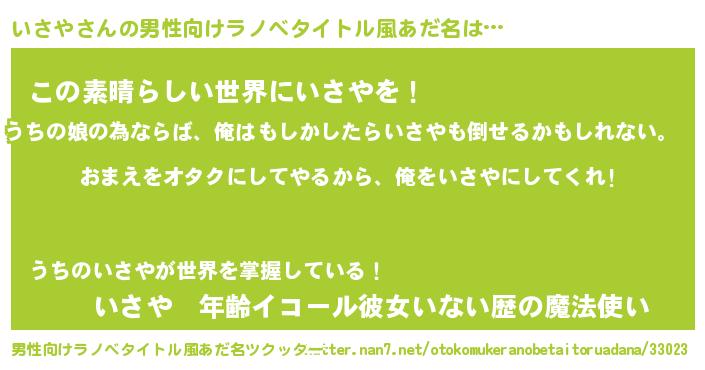 | 女子向けラノベタイトル風あだ名 | 『いさや夫妻のなれそめ』 |