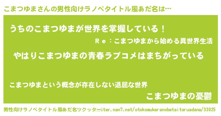 | 胡散臭い通販商品みたいなあだ名 | 『世界が平和になる高級そうな絵画…その名も「こまつゆま」』 |