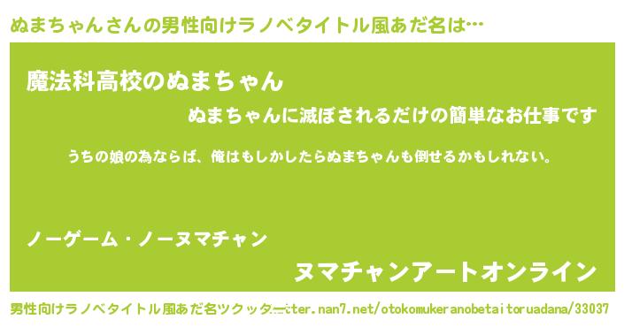 | ファンタジー風あだ名 | 『エターナルヌマチャンー』『ゼヌマトゥ』 |