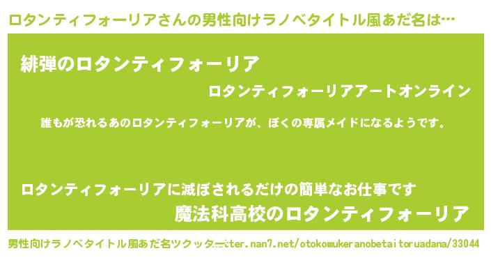 | 女子向けラノベタイトル風あだ名 | 『異世界でカフェロタンティフォーリアを開店しました。』 |
