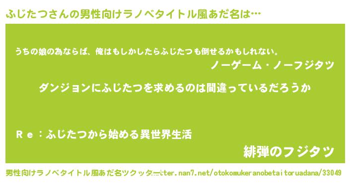 | 女子向けラノベタイトル風あだ名 | 『ふじたつは平凡を望む』『闇のふじたつ』 |