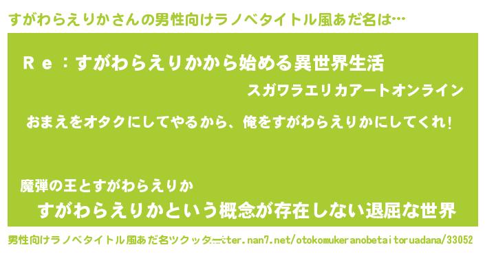 | 女子向けラノベタイトル風あだ名 | 『すがわらえりか夫妻のなれそめ』 |