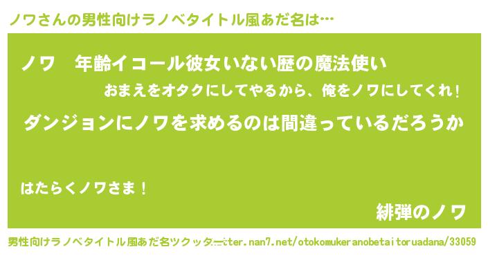 | 女子向けラノベタイトル風あだ名 | 『ノワは平凡を望む』 |