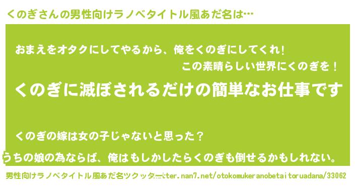 | ヒーロー風カッコイイあだ名 | 『慈愛の使者くのぎ』『仮面クノダー』 |