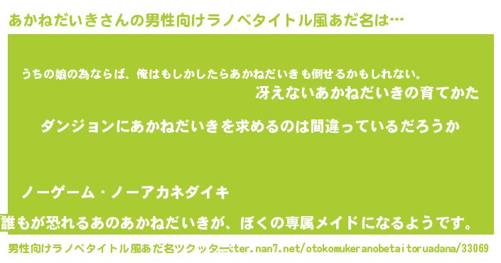 | 女子向けラノベタイトル風あだ名 | 『あかねだいきは平凡を望む』 |