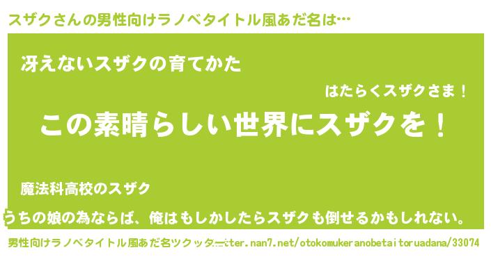 | 意味不明あだ名 | 『住所不定無職スザク(56歳)』『自称スザク』 |