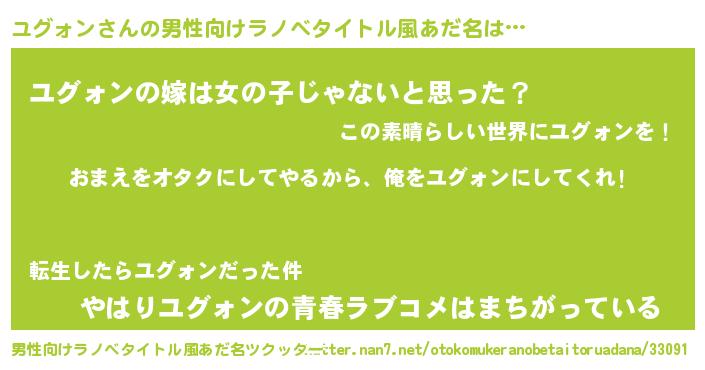 | 女子向けラノベタイトル風あだ名 | 『ユグォン夫妻のなれそめ』 |