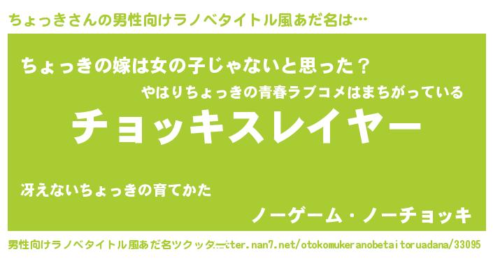 | 胡散臭い通販商品みたいなあだ名 | 『信頼と実績のサプリメント…その名も「ちょっき」』 |