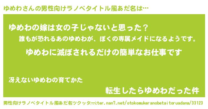 | ポケモン風あだ名 | 『ユメゴンZ』『ヒユメワ』『ゼニユメ』 |