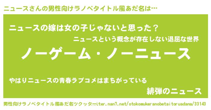 | 女子向けラノベタイトル風あだ名 | 『死神ニュースの再婚』 |
