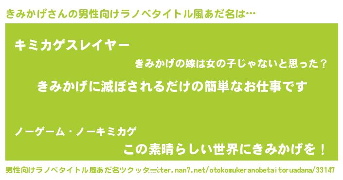 | ヒーロー風カッコイイあだ名 | 『仮面キミダー』『暗黒騎士キミ』 |
