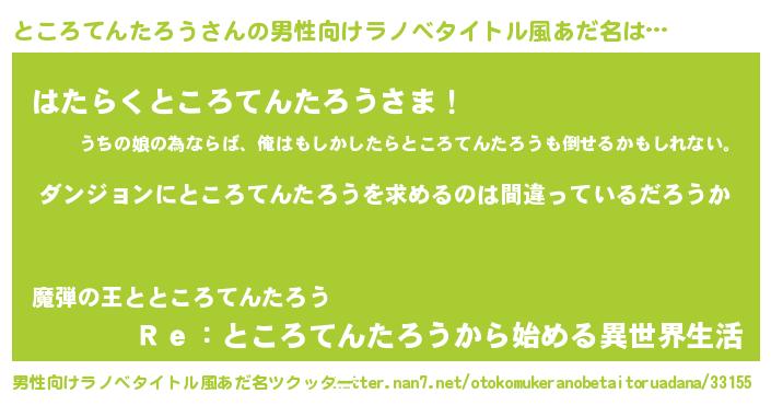 | 女子向けラノベタイトル風あだ名 | 『ところてんたろうは平凡を望む』 |