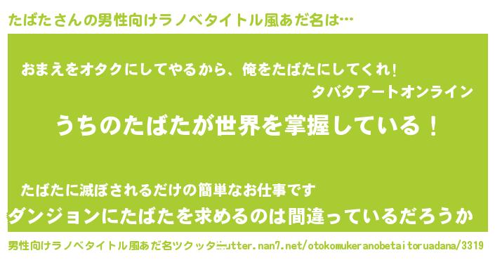| 意味不明あだ名 | 『眠気覚ましガムたばた味』『自称たばた』 |