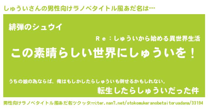 | 女子向けラノベタイトル風あだ名 | 『乙女ゲームの破滅フラグしかない悪役しゅういに転生してしまった…』 |