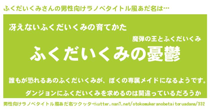 | 女子向けラノベタイトル風あだ名 | 『ふくだいくみ姫と円卓の騎士』 |
