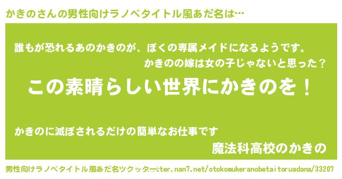 | 女子向けラノベタイトル風あだ名 | 『悪役かきのに転生したようですが、知った事ではありません』 |