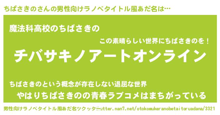 | 女子向けラノベタイトル風あだ名 | 『ちばさきの姫と円卓の騎士』 |