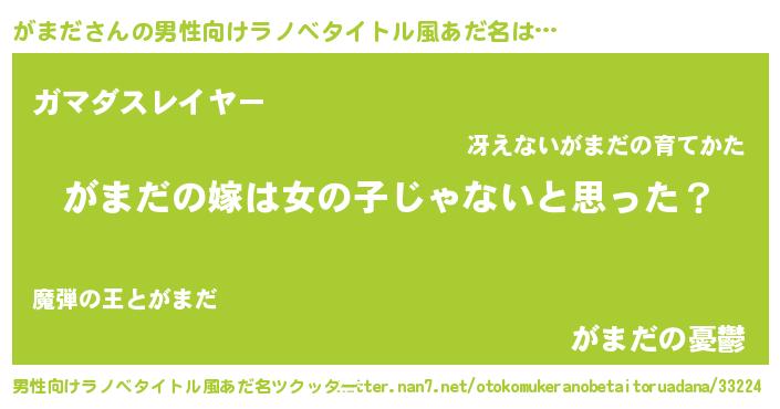 | 女子向けラノベタイトル風あだ名 | 『がまだ様がみてる』 |