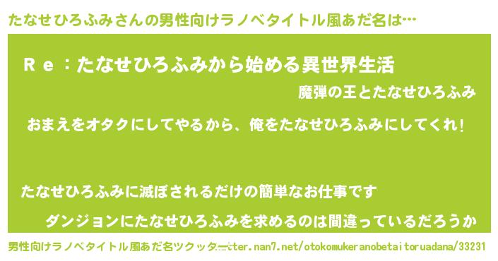 | 女子向けラノベタイトル風あだ名 | 『たなせひろふみ夫妻のなれそめ』 |
