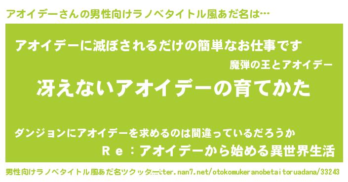 | ヒーロー風カッコイイあだ名 | 『サイバー戦士アオイデー』 |