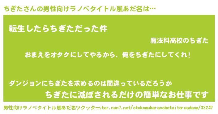 | ヒーロー風カッコイイあだ名 | 『正義の使者ちぎた』『最強戦士チギタ』 |