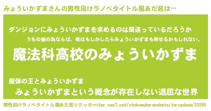 | 女子向けラノベタイトル風あだ名 | 『みょういかずまなんてお断りですっ。』 |