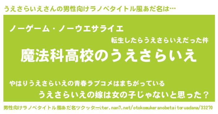 | 女子向けラノベタイトル風あだ名 | 『うえさらいえアンティーク』 |