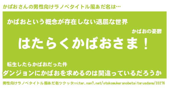 | ヘコむあだ名 | 『かばお(遠い目)』『かばっぺ』 |