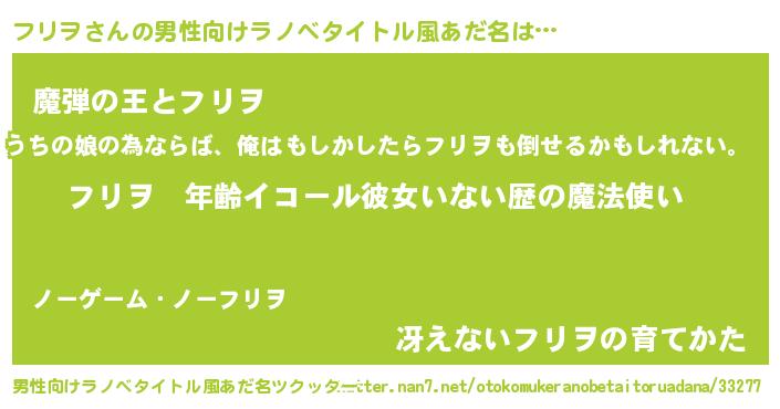 | 胡散臭い通販商品みたいなあだ名 | 『あなたにだけ特別に提供する限定10本のレアな日本酒…その名も「フリヲ」』 |