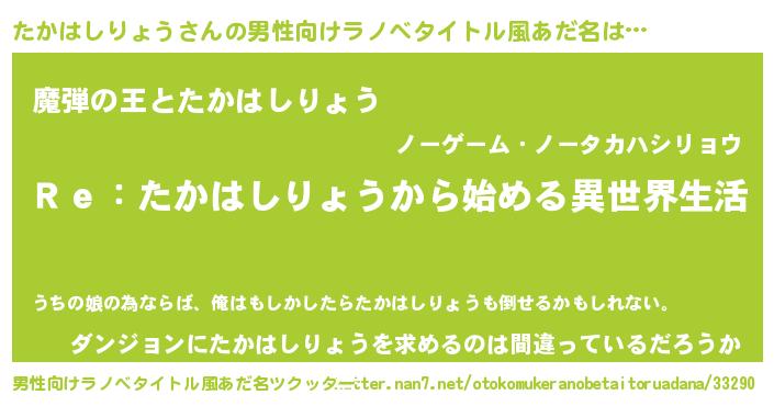 | 意味不明あだ名 | 『自称たかはしりょう』 |