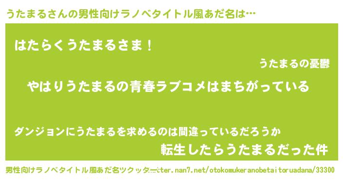 | ポケモン風あだ名 | 『ウタマダネ』『ウタゴンZ』 |