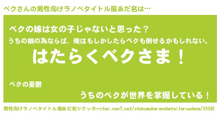 | 女子向けラノベタイトル風あだ名 | 『首の姫と首なしベク』『ベク様がみてる』 |