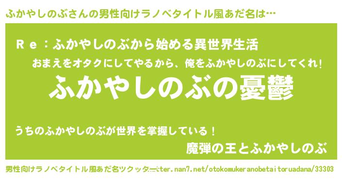 | 胡散臭い通販商品みたいなあだ名 | 『必ず成功するブレスレット…その名も「ふかやしのぶ」』 |