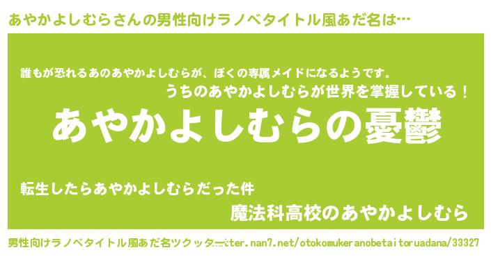 | 女子向けラノベタイトル風あだ名 | 『(仮)あやかよしむらのやんごとなき事情』 |